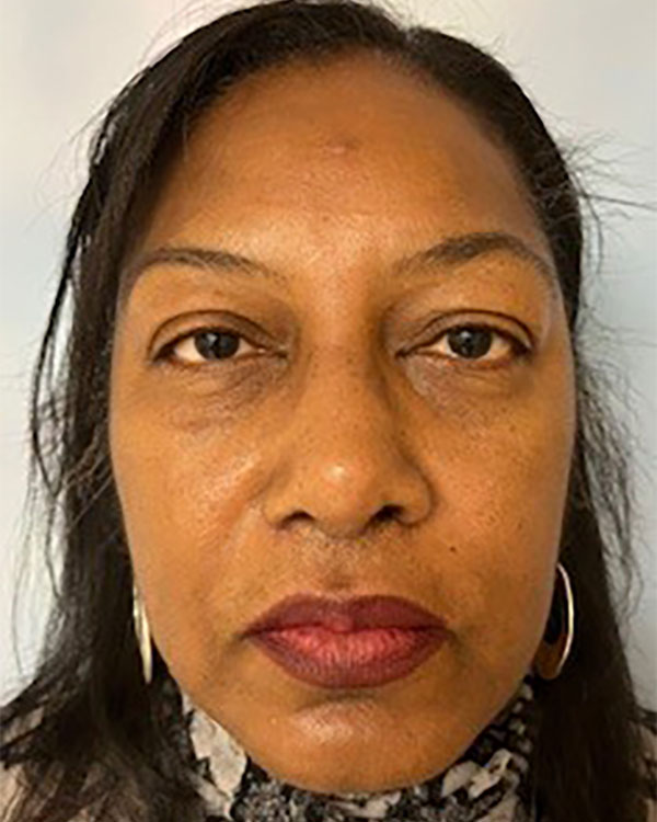 Nasal refinement on one of our own nurses. Tip support and definition from cartilage grafting. Note correction of nasal asymmetry.