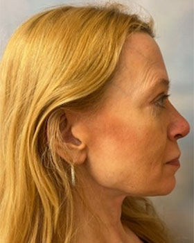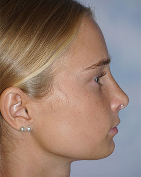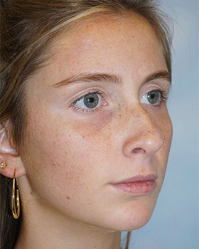 3 month post op septorhinoplasty with partial inferior turbinectomy for this young lady who desired to have a small dorsal bump removed and her breathing improved. A small skin lesion on top of her nose towards the tip was radiosurgically removed also. No tip work was done.